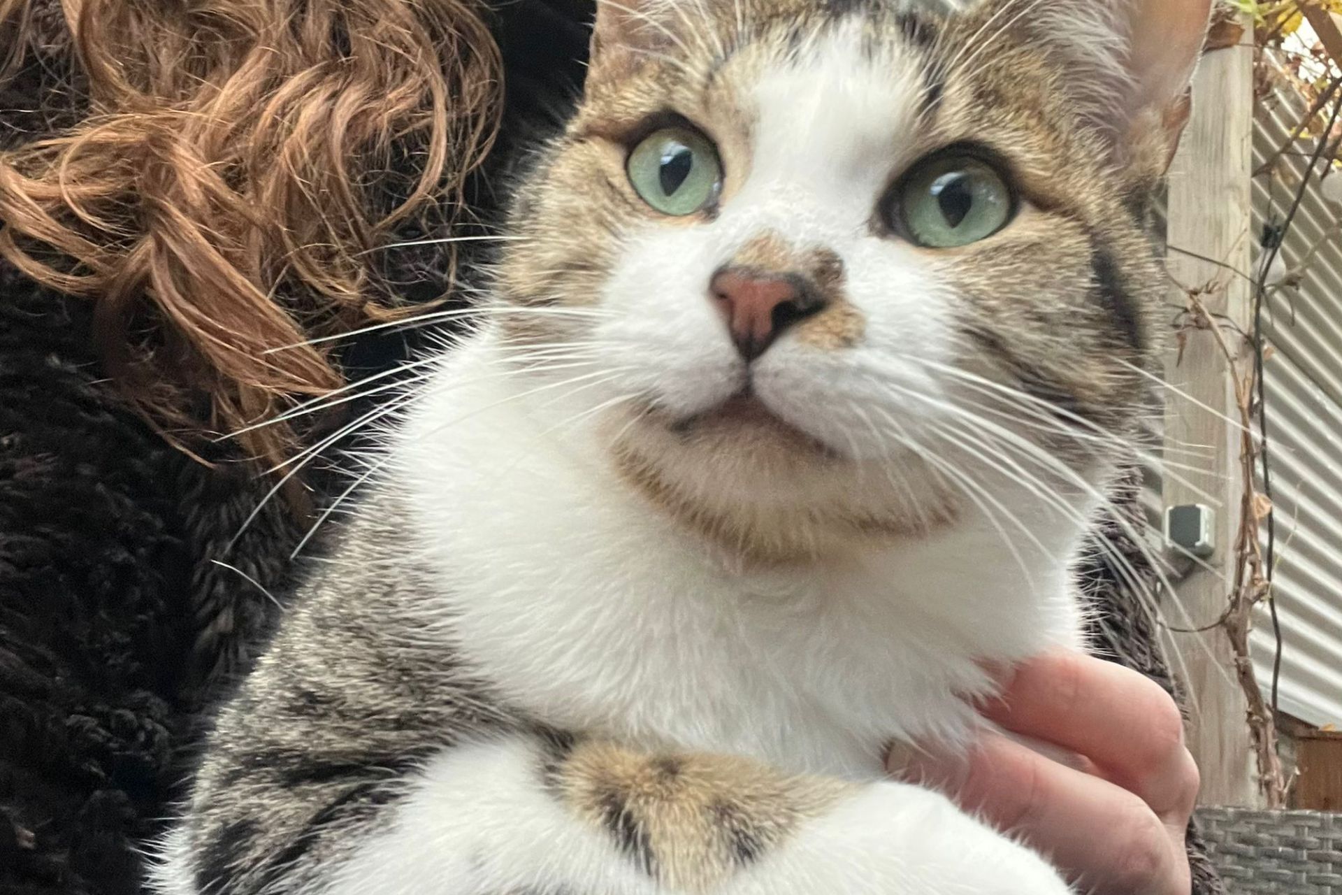 Lien is een gecastreerd mannetje en is gechipt. Hij is wit en wit/bruin gecyperd (vacht).