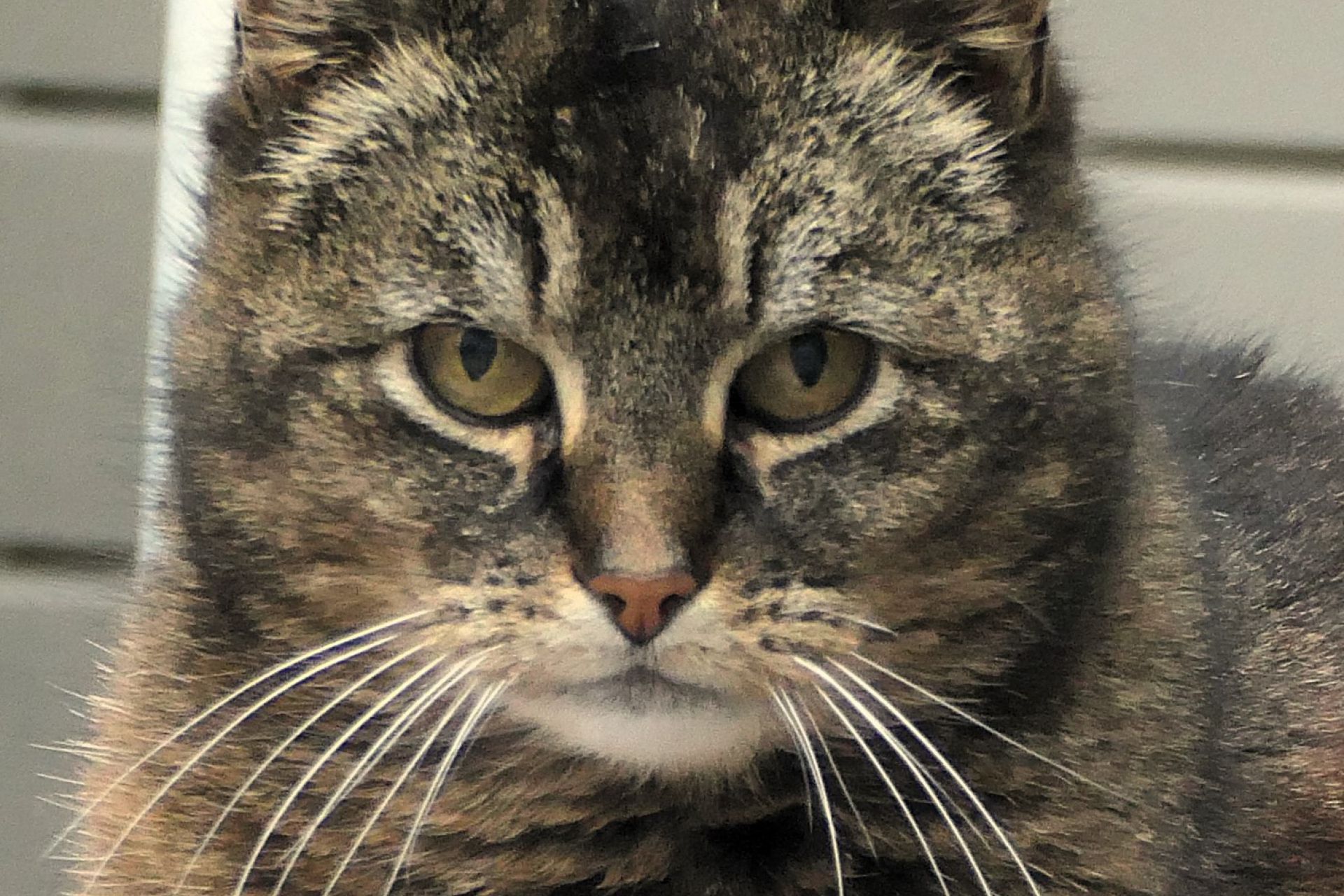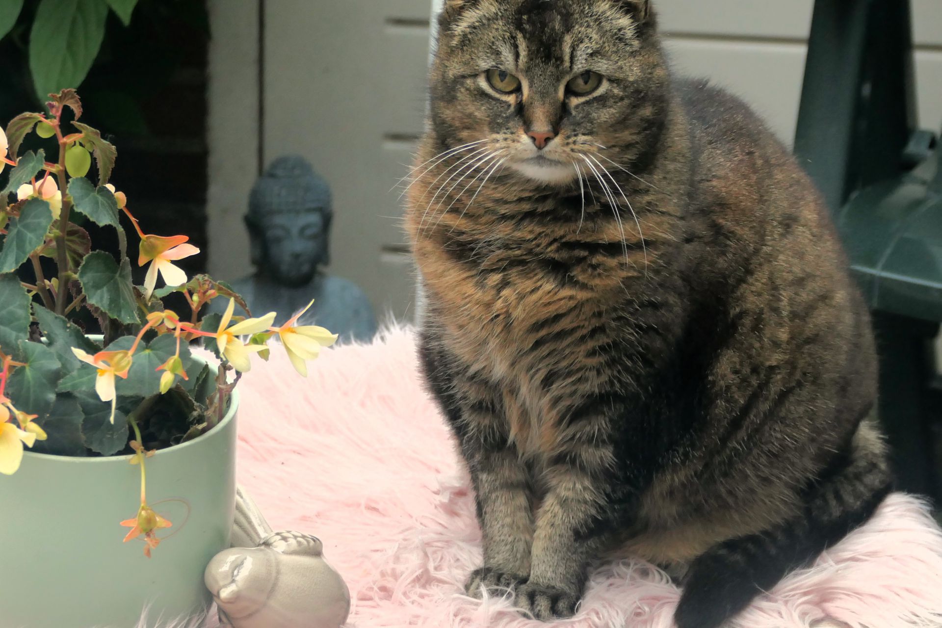 Snoepie is een 21-jarige kat, die wat moeilijker kan lopen.